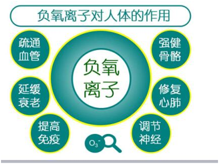 負(fù)氧離子對防治急慢性支氣管炎、哮喘、高血壓、高血脂、冠心病、神經(jīng)衰弱等疾病有著一定療效;