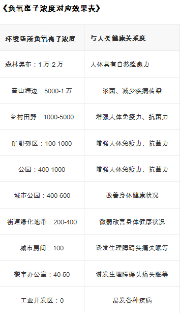 當(dāng)負(fù)氧離子濃度達到每立方厘米10萬個以上時,