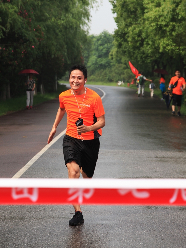 八點(diǎn)二十分,隨著裁判長(zhǎng)一聲令下,大家簇?fù)砬靶小F鹋懿痪?,天空下起了大雨,許多隊(duì)員撐傘前進(jìn),但更多隊(duì)員是冒雨前行。大家奮勇當(dāng)先,你追我趕,在奔跑中盡情揮灑。
