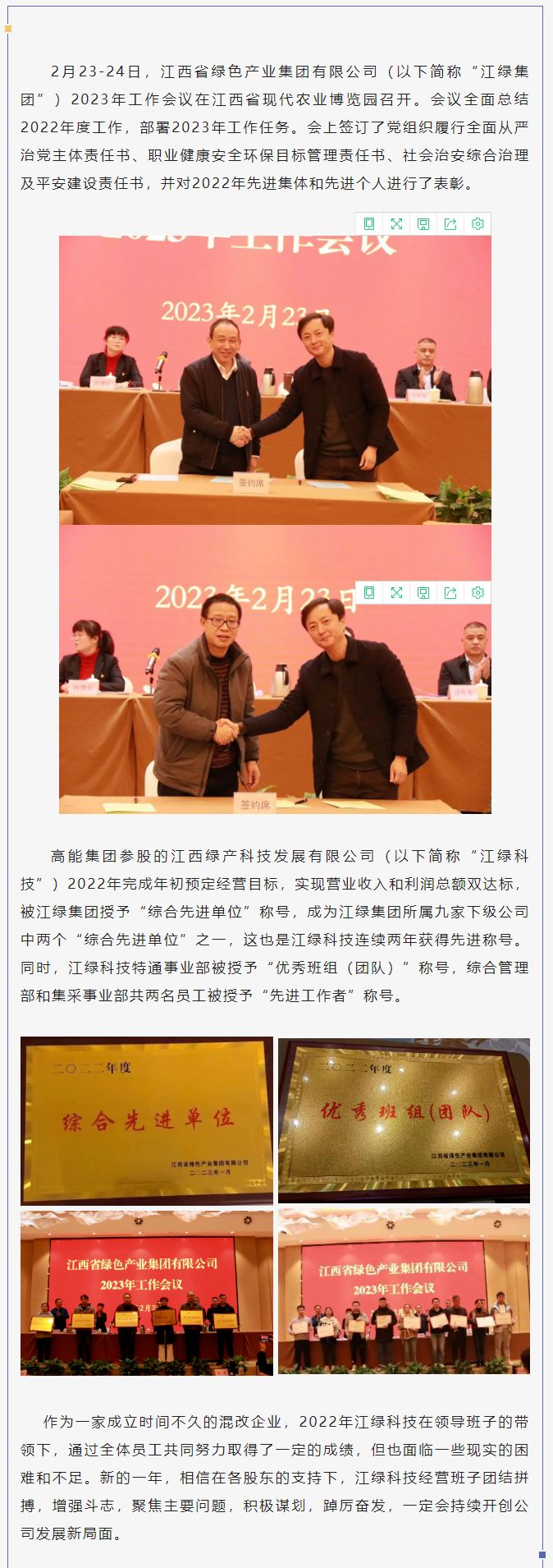 高能集團參股的江西綠產(chǎn)科技發(fā)展有限公司獲佳績!